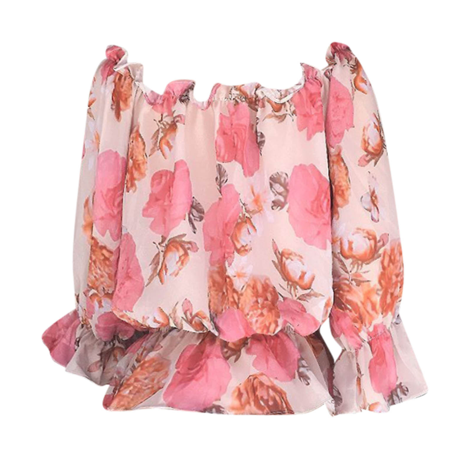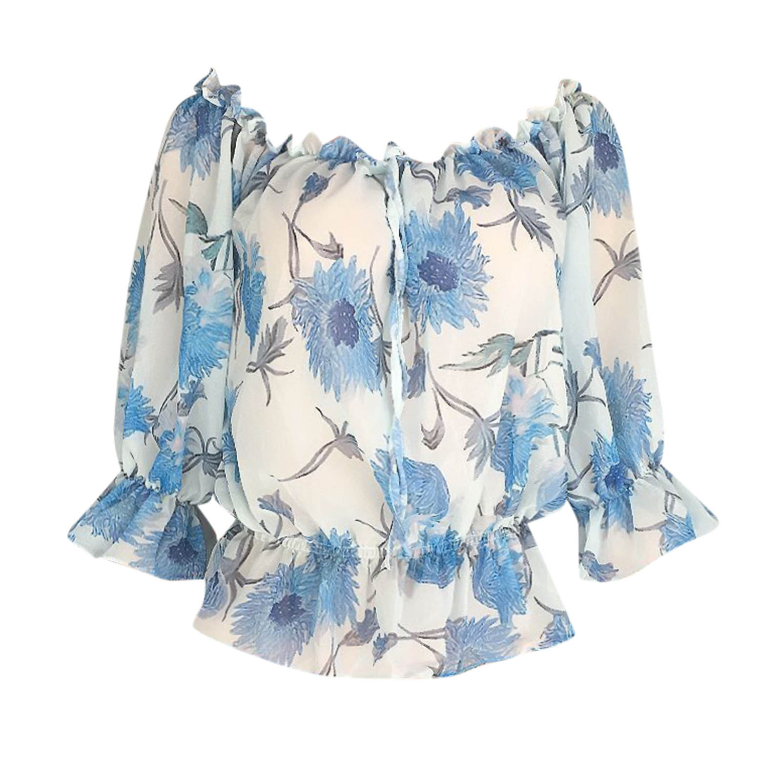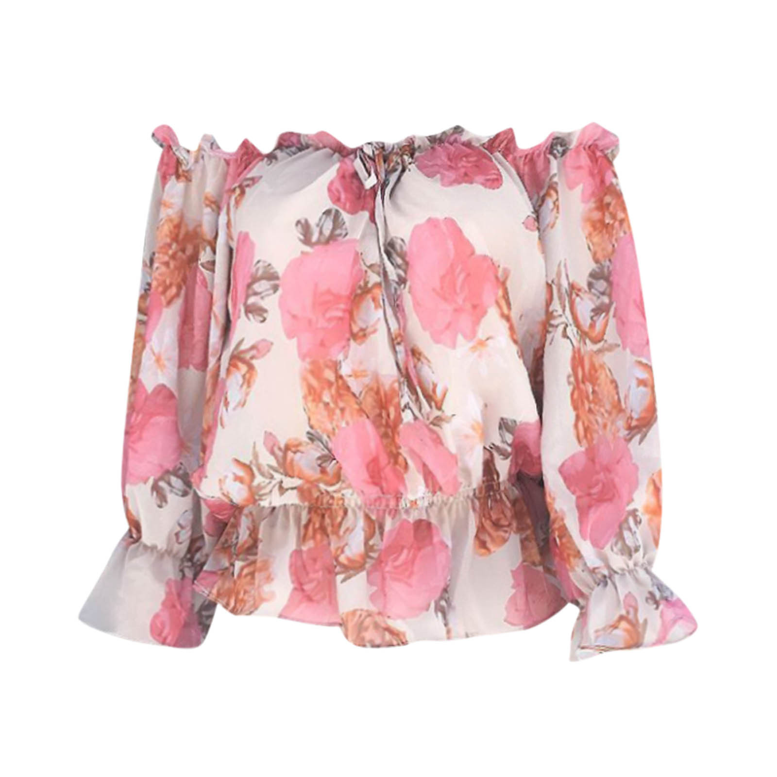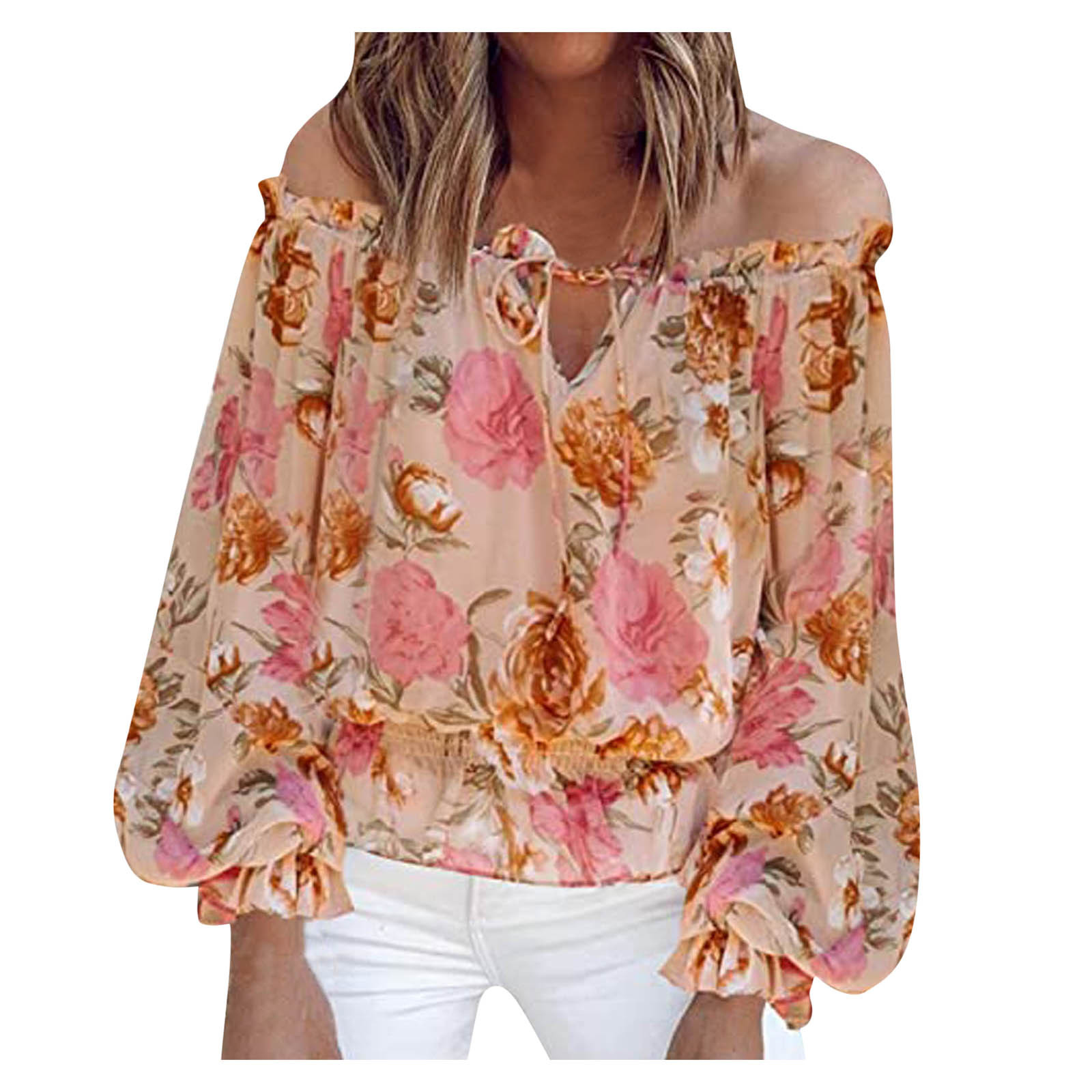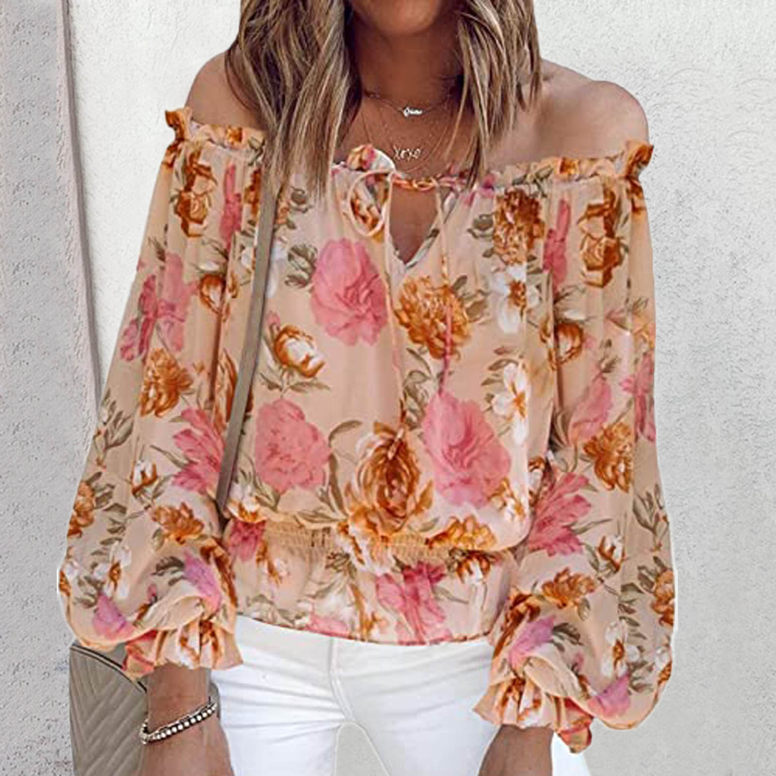 Fashion Floral Lace Up Blouse Sexy Off Shoulder O-Neck Tops Tee Casual Summer Ladies Female Women Long Sleeve Blusas Pullover